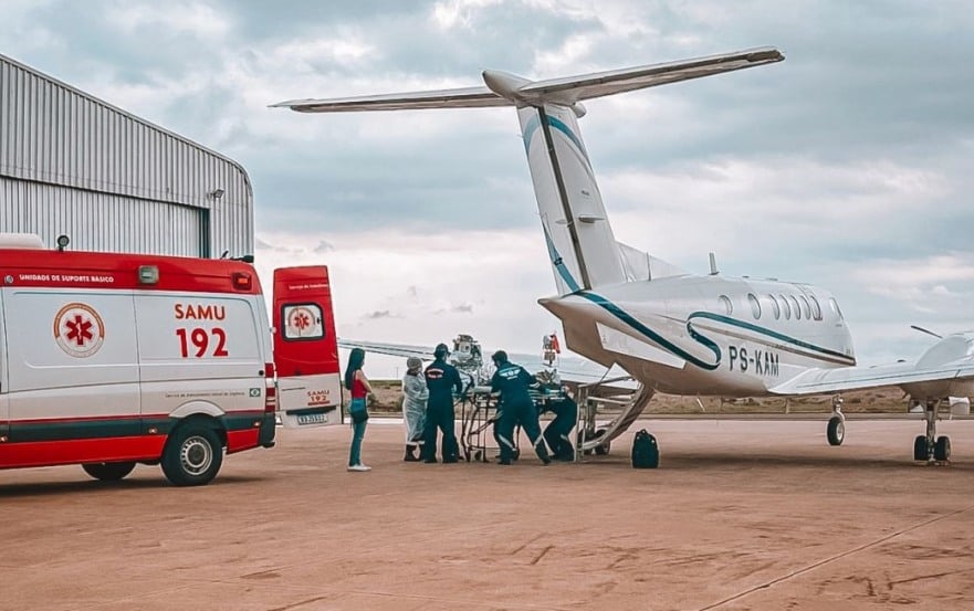 No local, a equipe do SAMU auxiliou no embarque da paciente em uma aeronave do Governo do Estado (Beechcraft King Air – B200), que efetuou a transferência até o Hospital Universitário de Londrina.