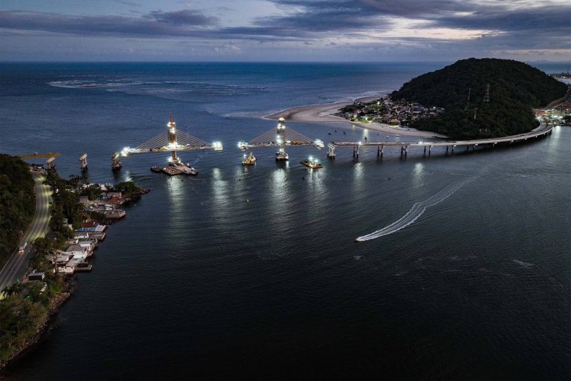 As obras da Ponte de Guaratuba atingiram 85% de execução no início de dezembro. Com 1.240 metros de extensão e investimento superior a R$ 400 milhões, a estrutura tem previsão de conclusão para abril de 2026. A ponte vai substituir definitivamente a travessia por ferry-boat, trazendo ganhos significativos em mobilidade, segurança viária e integração regional.