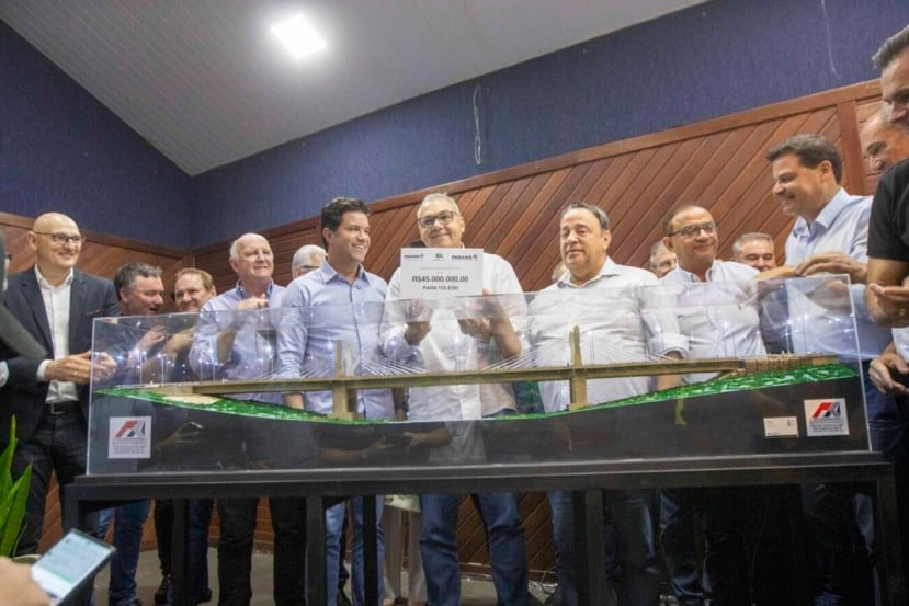 A obra está orçada em R$ 45 milhões, valor integralmente assegurado pelo Governo do Estado do Paraná, que formalizou o repasse por meio da entrega simbólica de um cheque neste valor. Ato contínuo, houve o descerramento da maquete da ponte, gesto que selou oficialmente a entrega do projeto à administração municipal, a quem caberá conduzir o processo licitatório e acompanhar todas as etapas da execução cujo início está previsto para março de 2026.