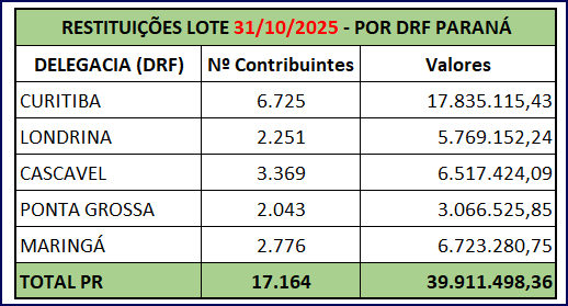 No Paraná os números por Delegacia da Receita Federal (DRF) são os seguintes: