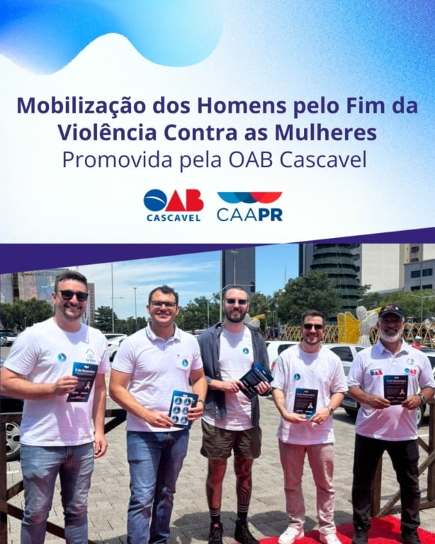 Cascavel e Paraná - A OAB Cascavel promoveu, em 6 de dezembro, a Ação do Laço Branco, marcada por um ato público de conscientização no Calçadão em defesa do fim da violência contra as mulheres. A mobilização reuniu profissionais, cidadãos e representantes da advocacia para reforçar o papel fundamental dos homens no enfrentamento à violência e na construção de ambientes mais seguros. A subseção agradeceu a participação de todos que aderiram à iniciativa.