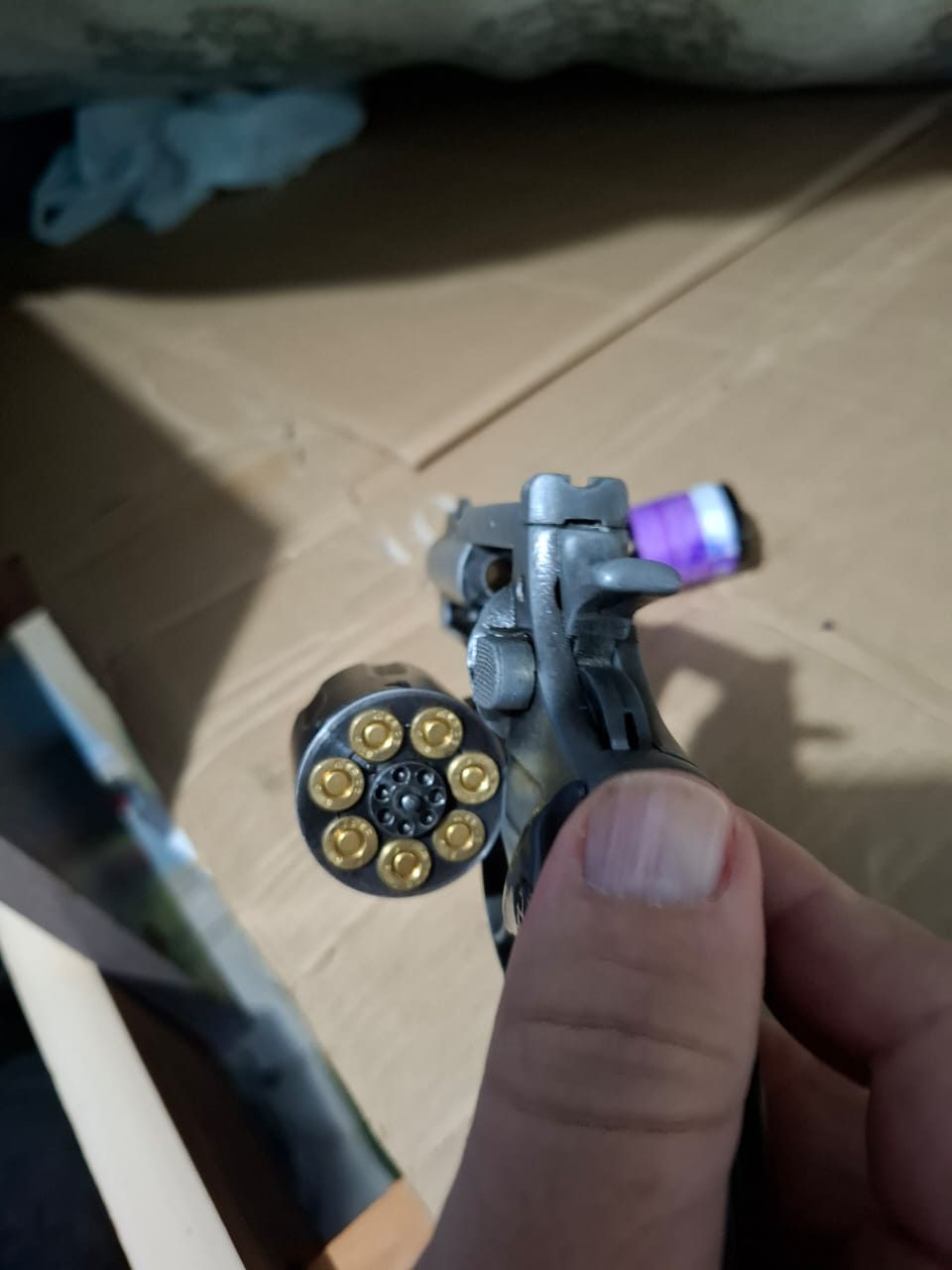 Durante o cumprimento das ordens judiciais, foi localizado um revólver calibre .32, municiado com sete cartuchos intactos, na residência de um dos executores. No imóvel do segundo suspeito, foi apreendida uma munição do mesmo calibre e com características idênticas, reforçando o vínculo entre os envolvidos. Um dos indivíduos foi preso em flagrante por posse irregular de arma de fogo de uso permitido.